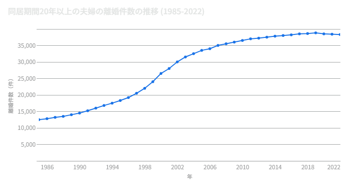 厚生労働省の人口動態統計を見ると、同居期間が20年以上の夫婦の離婚件数は、増加傾向にあります。