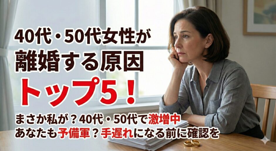 この記事では、40代・50代の女性が「もう限界かもしれない」と感じてしまう、言葉にしづらいけれど、とても根深い「5つの離婚原因」について、深く掘り下げていきます。