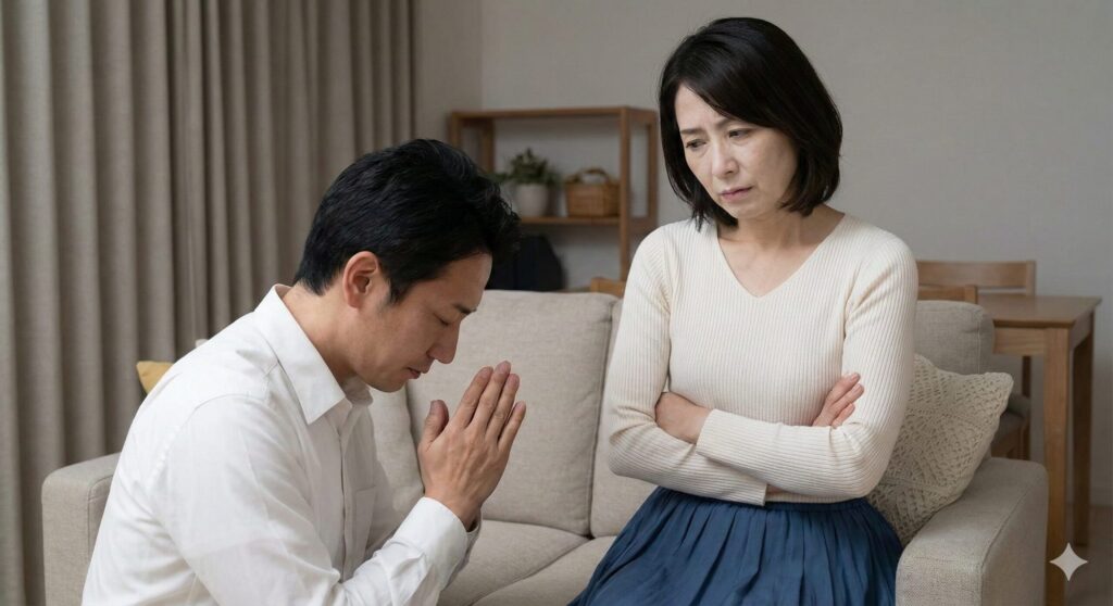問い詰めると、夫は泣いて土下座し、