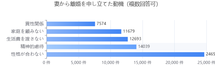 出典:裁判所 司法統計 令和5年度 婚姻関係事件数 申立ての動機別申立人別 を元に作成